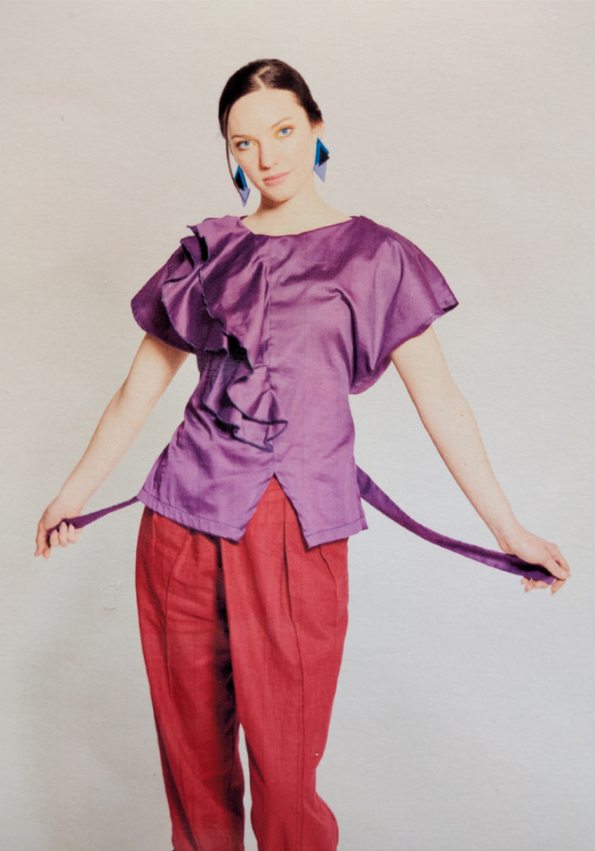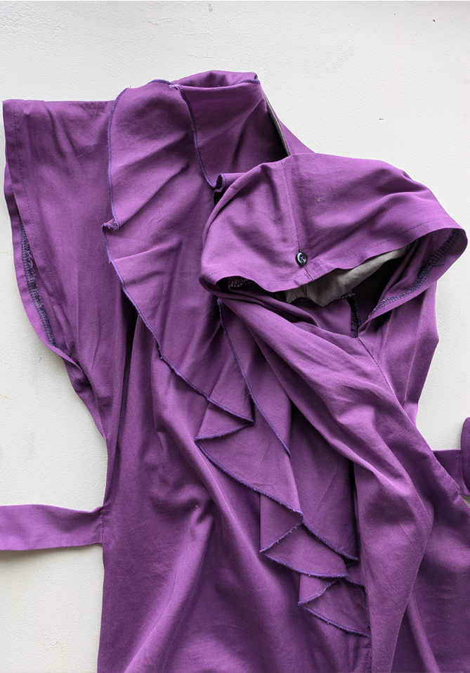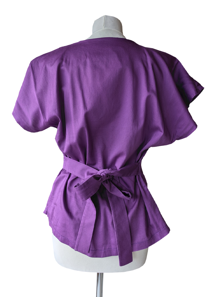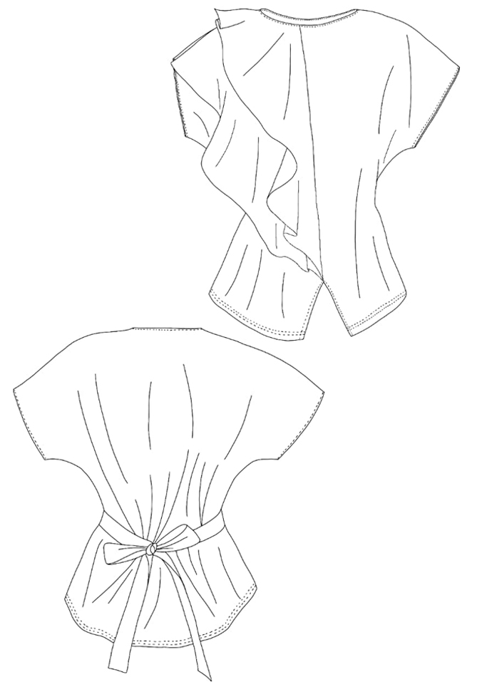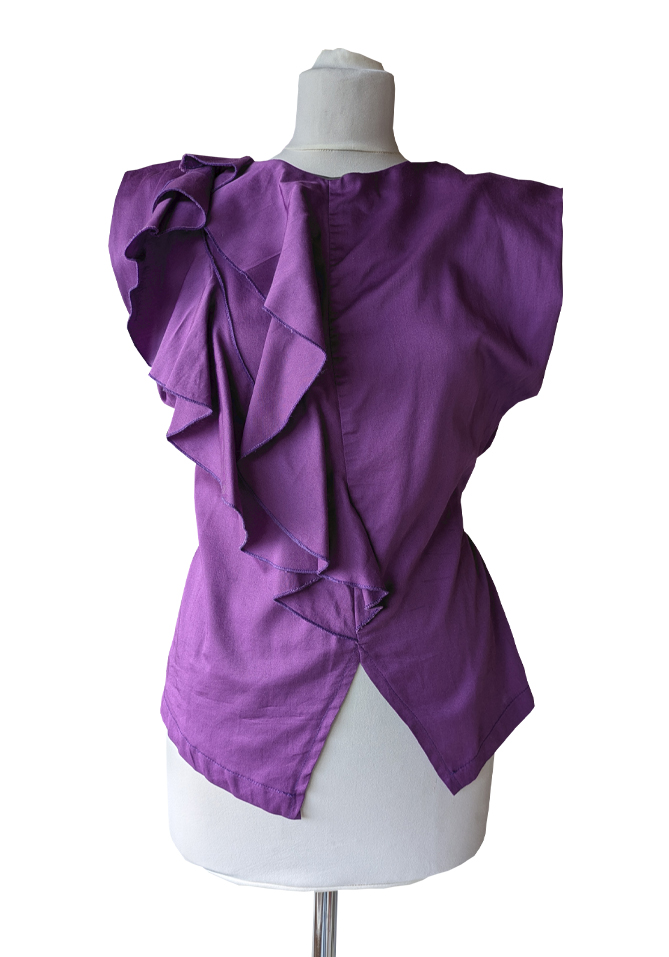 This shirt has ruffles on the side where a breast is missing. The ruffles cover the flat side of the chest, they are decorative and create more volume. With the help of an invisible button, the shirt can have short sleeves or no sleeves. The straps can be tied together at the back to create a beautiful waistline. Our mannequin misses her right breast, she wears the shirt in size medium. The pattern of this design can be mirrored, so it is suitable for people with only a left breast as well as individuals with only a right breast ✨ To receive the sewing pattern and instructions for this garment, please send us an email with the name of the design, and if you wish to receive the pattern for print on A4, A0 or letter size paper. If possible, please mention also your country of living (this is valuable for our internal statistics). The sewing pattern is free of charge!
